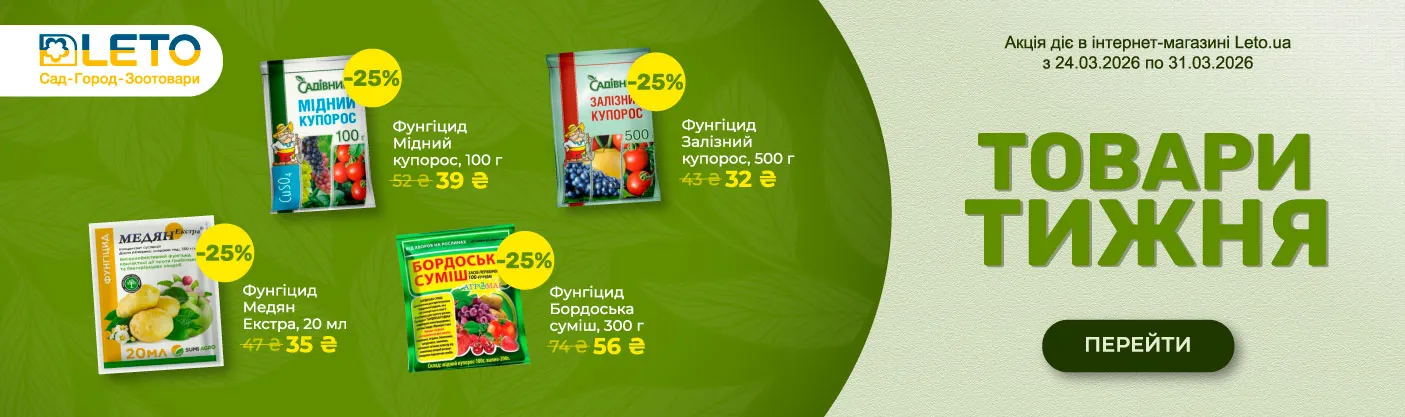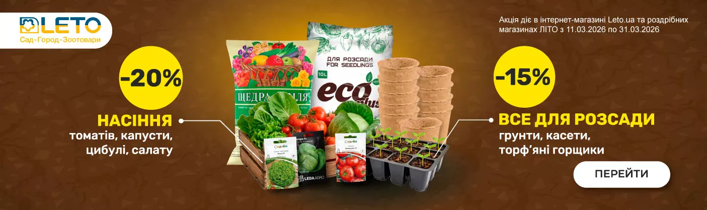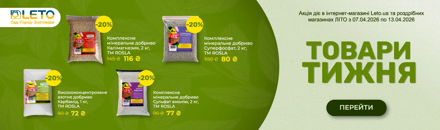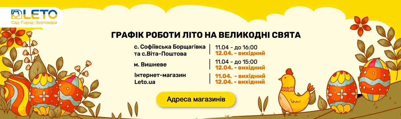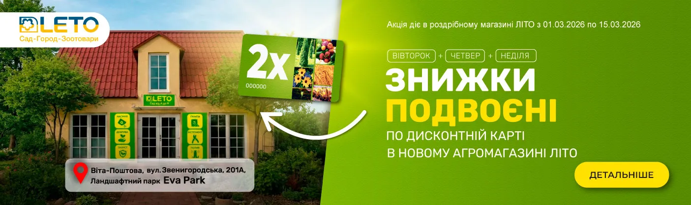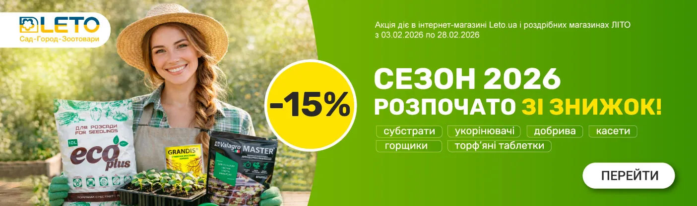 Інтернет-магазин LETO - це зручна торгова платформа, на якій кожен садівник та городник, з легкістю зможе придбати потрібні йому товари, в режимі онлайн. Ми пропонуємо широкий асортимент продукції, який здатен задовольнити не тільки власників дачних і присадибних ділянок, а й досвідчених аграріїв та професіоналів, у сфері ландшафтного дизайну.
