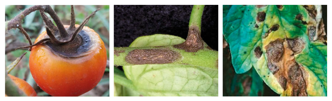 Симптоми: альтернаріоз томатів (або суха плямистість) є грибковим захворюванням, що пошкоджує листя, стебла та плоди томатів. Головними симптоми альтернаріозу томатів є: поява коричневих або чорних плям на листках, круглої форми та різного розміру, на яких ледь помітне утворення чорного нальоту (спороношення). На пагонах та стеблах плями набувають продовгуватої форми, з часом пошкоджені місця відмирають та стебла томатів починають в‘янути. На помідорах утворюються плями чорного кольору, грибок проникає всередину плоду, та навіть пошкоджує насіння, після чого воно чорніє і втрачає свою схожість. При захворюванні, спостерігається осипання помідор до їх дозрівання.