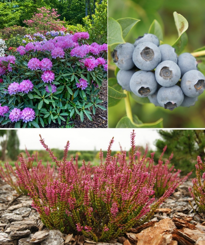 Це всі види сімейства вересових - верес, Ерік, лохина високоросла і її різновиди, а також журавлина , рододендрони і азалії воліють грунту з рН 4-5.