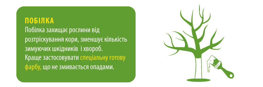 Жовтень - час завершення активного сезону для більшості плодово-ягідних культур. Основні роботи спрямовані на підготовку до зимового періоду, щоб забезпечити успішну зимівлю і гарний урожай наступного року. Важливо здійснити обрізку плодових дерев - видалення хворих, сухих та пошкоджених гілок. Це допоможе зберегти сили рослини і сприятиме кращому плодоношенню в наступному році. Побілка рослин під зиму обов‘язкова. Вона захищає рослини від розтріскування кори (читайте статтю) та зменшує кількість зимуючих шкідників та хвороб на стовбурі та гілках. Краще застосовувати спеціальну готову фарбу, що не змивається опадами.