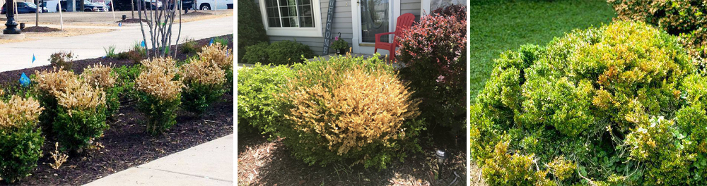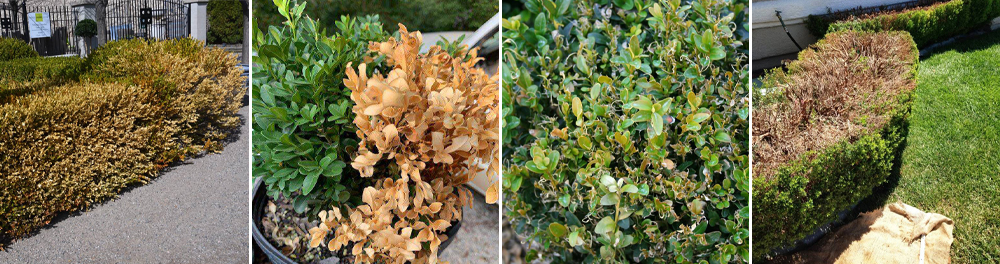 Весняний опік самшиту, хвороба самшиту, самшитова вогнівка, хімічний опік самшиту