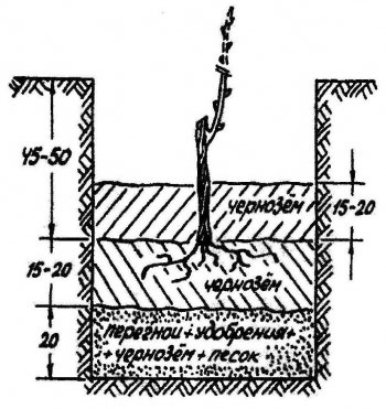 На важких, глинистих ґрунтах яма повинна бути ще на 10 см глибше.