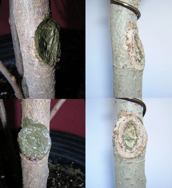 Лак Бальзам містить не тільки гідрофобні елементи, що оберігають деревину від попадання вологи, а й стимулятори росту, які значно прискорюють загоєння ранок і навіть значних ушкоджень. У нашій практиці ми спостерігали випадки, коли зрізи діаметром 4-5 см заростали за 1 рік після обробки цією замазкою.