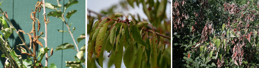 Так, хворі дерева і чагарники засвоюють азот виключно в нітратній формі. Амонійна і амідна виявляються для них малодоступними. Тому, азотні підживлення варто проводити такими добривами, як калієва селітра, магнієва селітра, кальцієва селітра, віддаючи перевагу тим добривам, які містять калій і кальцій, що зміцнюють стінки рослин. Крім того, корисними для хворих дерев є підживлення фосфорно-калійними добривами, такими, як Плантафол 10.54.10, монокалійфосфат, Майстер 3.11.38, Рост Концентрат.