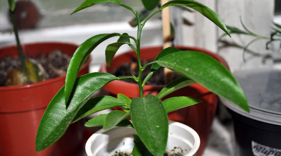 Перший час після посіву дерево не вимагає особливого догляду. Головне, щоб воно не страждало від заливання та пересушування, отримувало достатньо тепла та світла. Тому поставте його на південне, або південно-східне вікно. Оскільки взимку світла небагато, а день короткий, може знадобитися додаткове підсвічування вашого мандарину. Не варто захоплюватися і підживленням рослини. Коли дерево освоїть перший горщик (кінчики коренів буде видно з дренажних отворів), пересадіть його у більший на 3-5 см. Краще робити це максимально акуратно, не руйнуючи кореневої грудки. Ґрунтосуміш беруть для цитрусових, слабокислу, збагачену пролонгованим добривом з розрахунку 1-2 г/л суміші. Суміш насипають на дно горщика і заповнюють нею проміжки між стінкою і грудкою так, щоб деревце виявилося на тій же глибині, що й раніше. Після цього саджанець поливають розчином укорінювача Радіфарм, або Ферті Рут і підсипають ґрунт, якщо він осів. Швидше за все, посіяний на початку січня мандарин доведеться пересадити у березні чи квітні.