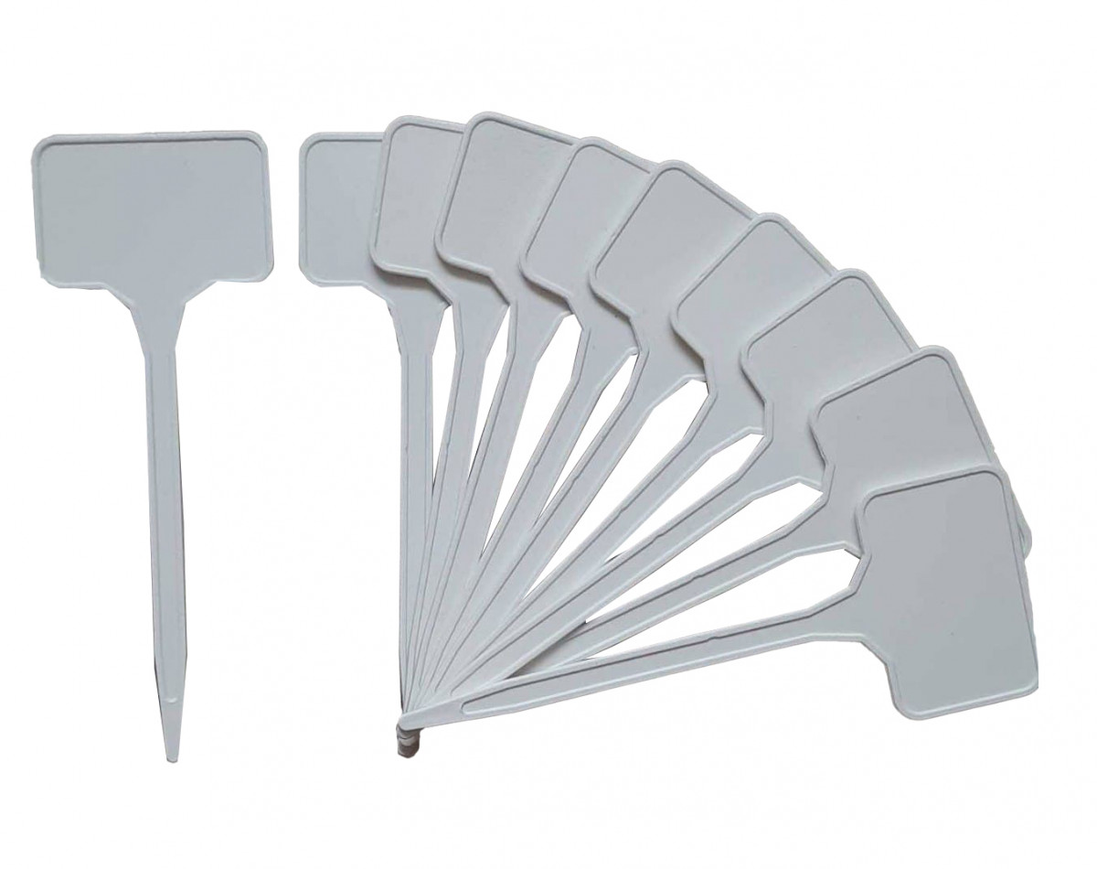Дані багаторазові садові маркери поставляються набором, що складається із десяти табличок. Усі вони виконані з якісного пластику без використання шкідливих барвників та домішок. Такі таблички легко витримують вплив прямих сонячних променів і не будуть деформуватися. Крім того, вони стійкі до вологи та різкого перепаду температури. Писати на таких табличках рекомендується спиртовим маркером. У такому разі вся написана інформація не змиється дощами, і залишатиметься читаною протягом тривалого часу. Таблички дуже легко встановлюються. Вони мають привабливий вигляд і нейтральний білий колір. Таблички є багаторазовими, тому ви завжди зможете стерти написану інформацію, і використовувати маркери для позначення інших культур.