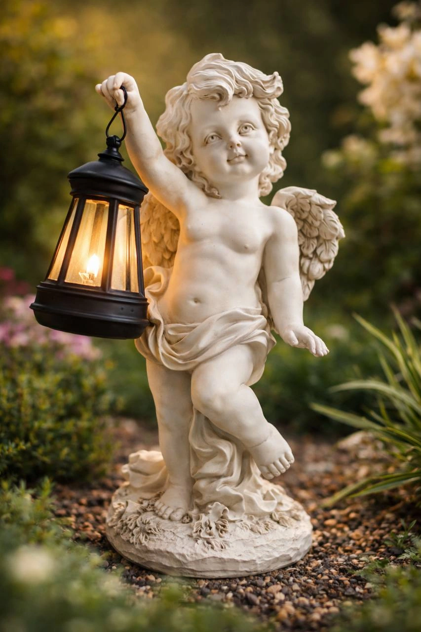 Садова фігурка Янгол - це універсальний варіант для тих, хто шукає поєднання декору та підсвітки без зайвих витрат на електроенергію. Фігура легко інтегрується у різні стилі оформлення та не потребує складного обслуговування. Вона оснащена автоматичним ліхтарем, який заряджається від сонячного світла. Проста в обслуговуванні та довговічна.