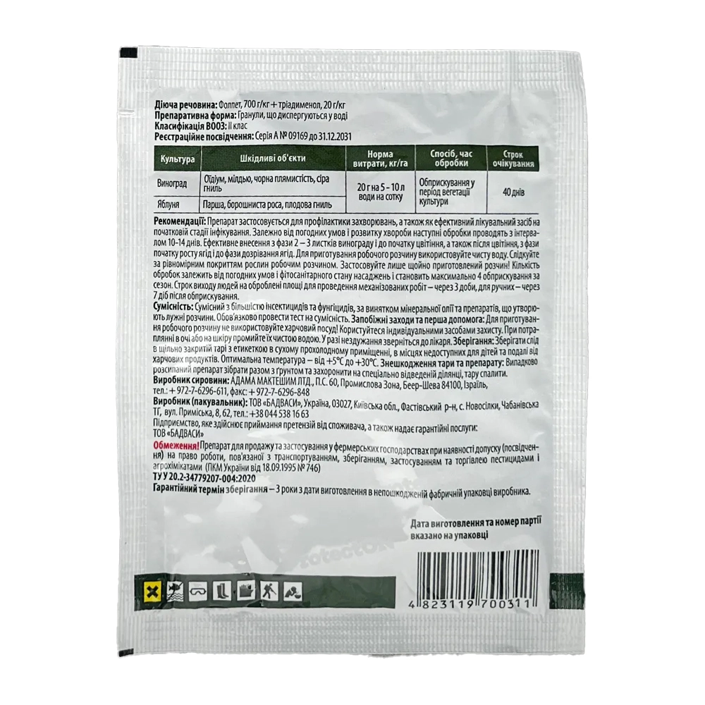 Діючі речовини: триадименол та фолпет