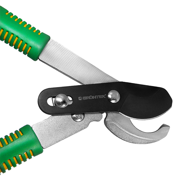 Потужний Гілкоріз для обрізання грубих гілок на присадибній ділянці, він призначений для обрізки гілок діаметром до 30 мм. Верхнє лезо покрите тефлоновим шаром, що запобігає налипання соку, сміття від гілок, а також самої гілки при зрізі.