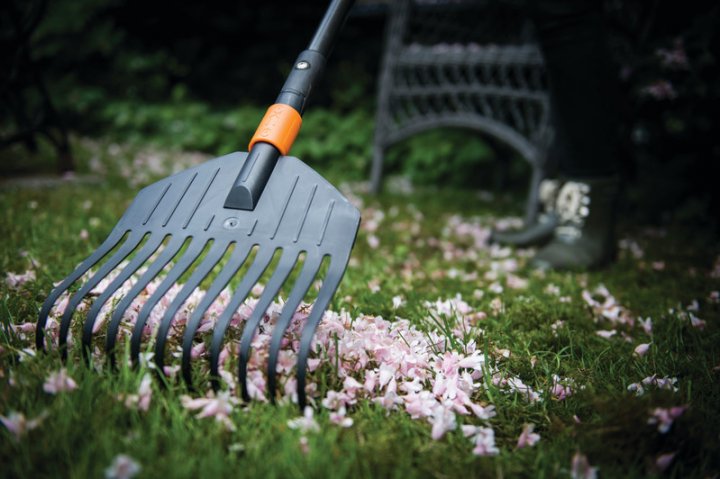 Легкі віялові граблі з пластиковими зубцями для прибирання листя або дрібного сміття з газону або з високої трави. Ширина насадки - 22 см. Кількість зубців - 11 шт. Можна приєднати до будь-яких ручок із серії QuikFit.