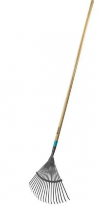 Сталеві віялові граблі для збору сміття на трав'яному ділянці.