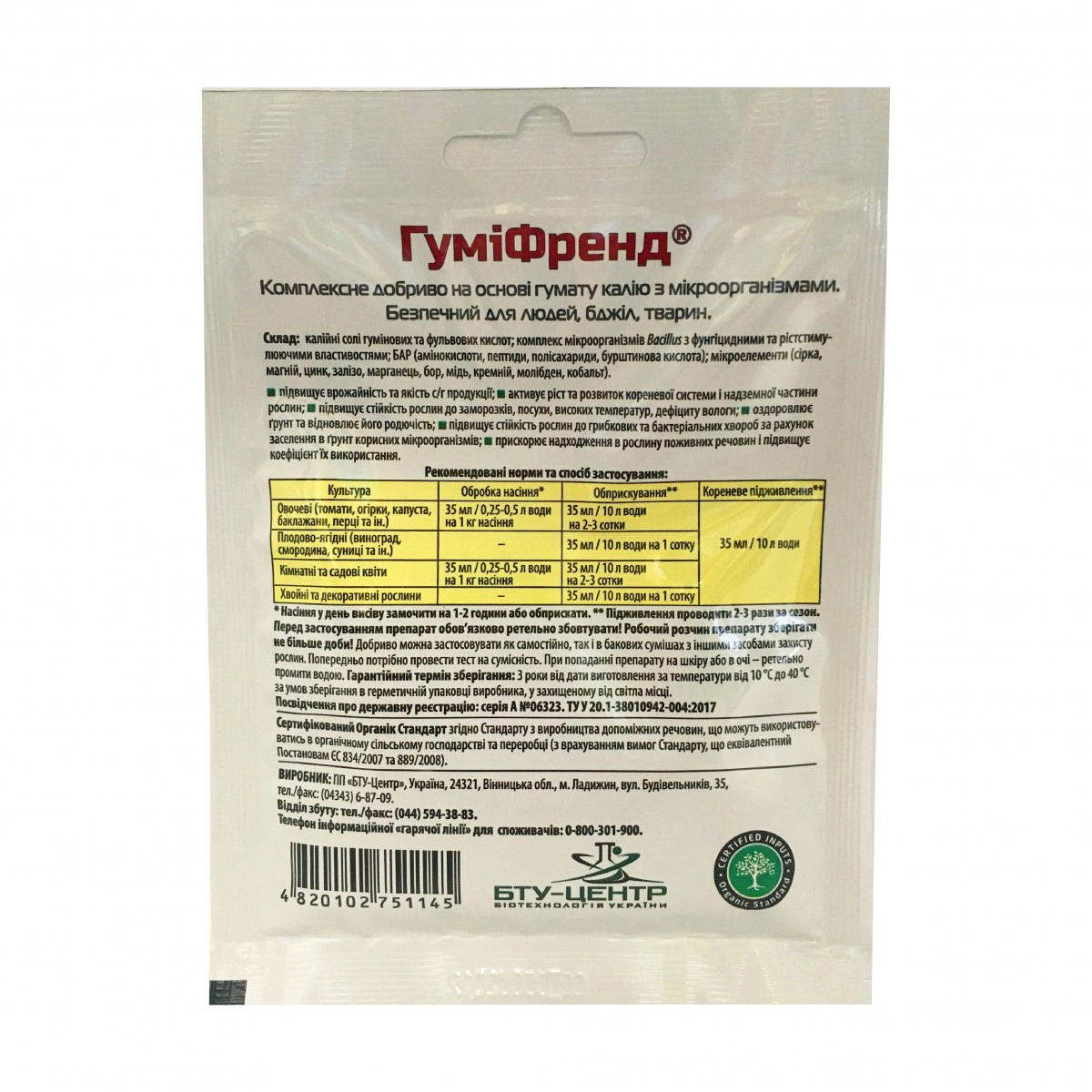 | Добриво ГуміФренд - це унікальна, у своєму роді комплексна підгодівля. Препарат не тільки заповнює всі поживні потреби широкого спектра рослин, але і значно покращує якість і родючість ґрунту. |