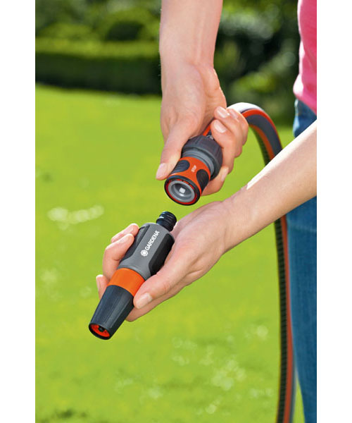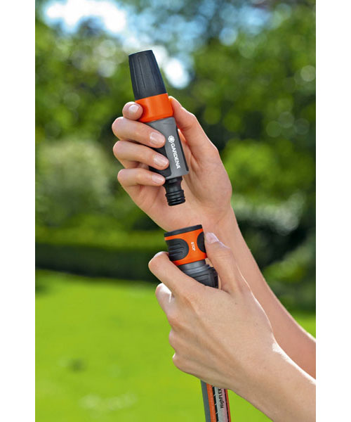При приєднанні насадки, потік води знову йде. Необхідність повертатися до крана для заміни насадок відпадає. Конектор легко знімається, якщо його потягнути на себе. Поверхня з м'якого рифленого пластика дозволяє зручно і міцно утримувати інструмент в руці.