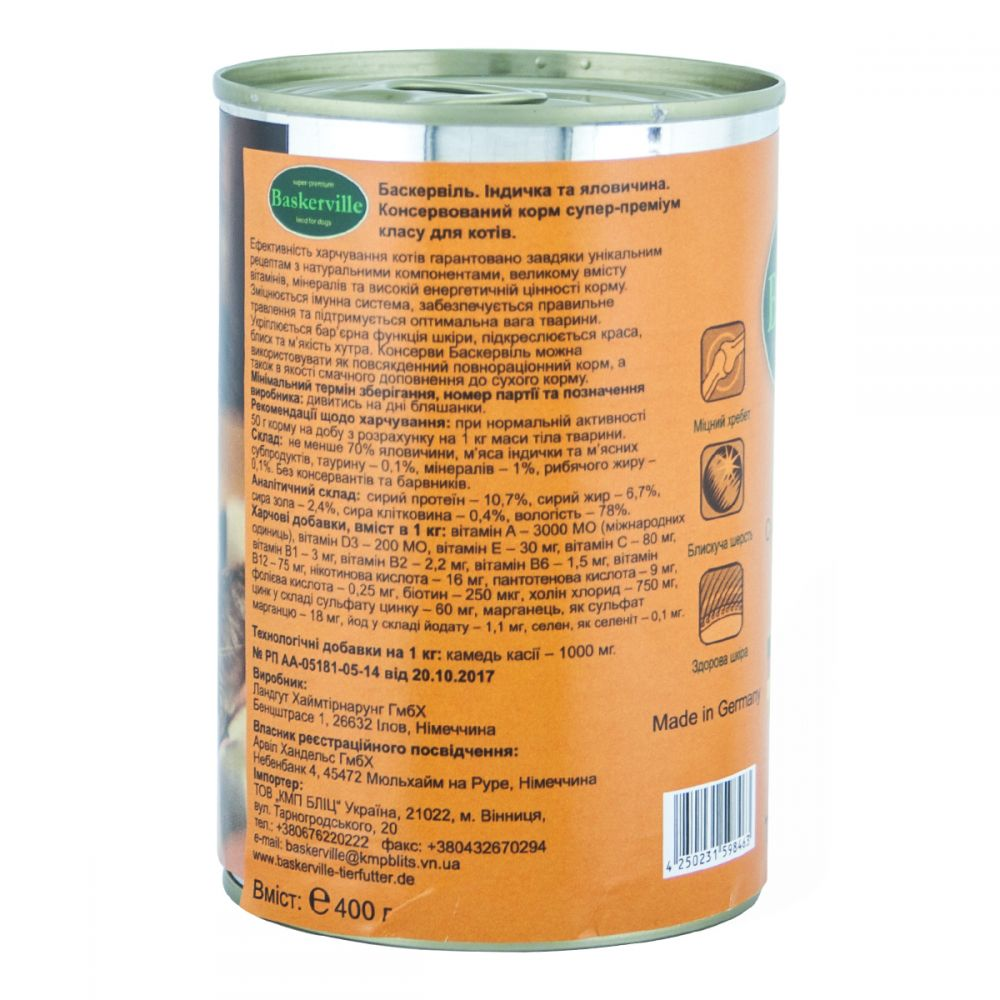 Baskerville Корм для котів Індичка та яловичина (400г)