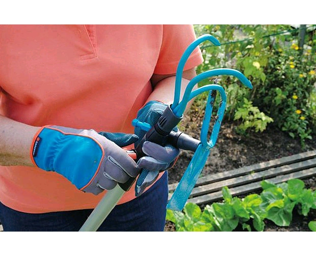 Інструмент сombisystem, до якого належить цей 3-х зубий культиватор Гардена, просто з'єднується з ручкою і кріпиться гвинтом. Перевірена технологія забезпечує надійність експлуатації без розгойдування інструменту.