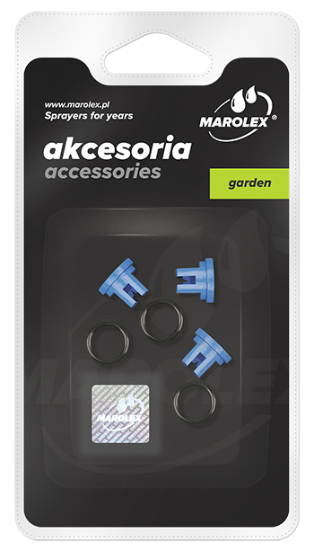 За рівномірне зрошення рослин агрохімікатами в розпилювачі відповідає форсунка. Якщо вона з якихось причин вийшла з ладу, то розчин буде розподілятися нерівномірно і за різною траєкторії. У такому випадку потрібно замінити форсунку. Якщо ви використовуєте розпилювач Marolex, тоді рекомендуємо придбати набір з трьох форсунок.