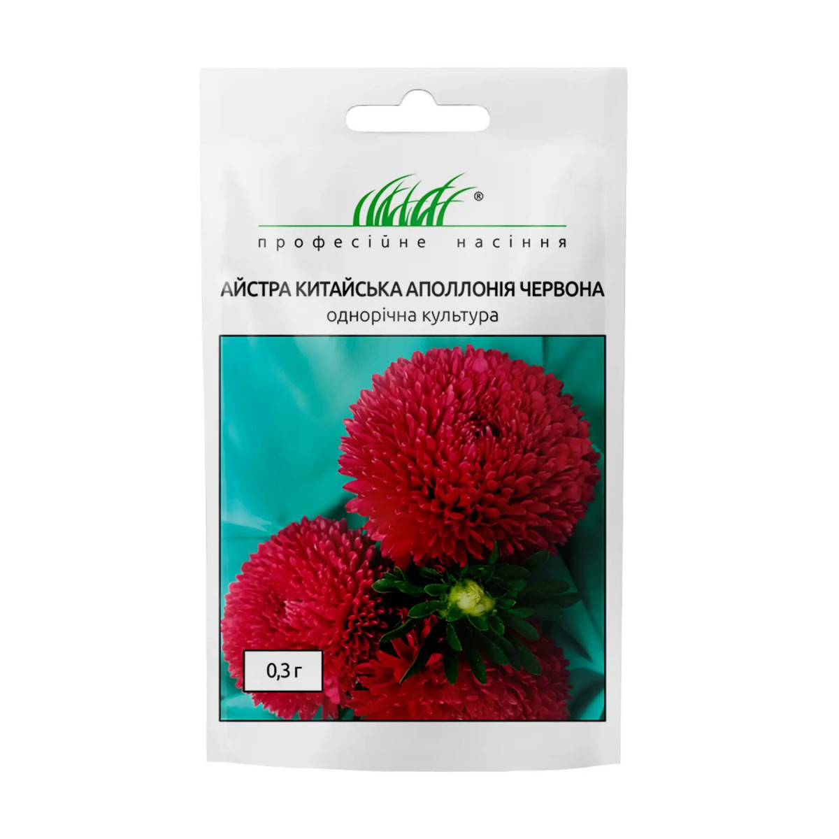 Добірне насіння для вирощування однорічної великої айстри. У рослин червоні суцвіття діаметром 10 см. Висота рослин – 65 см.