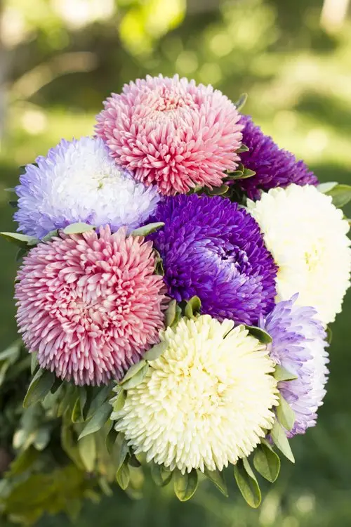 Дуже пишні айстри різних кольорів заполонять вашу клумбу махровими квітками.