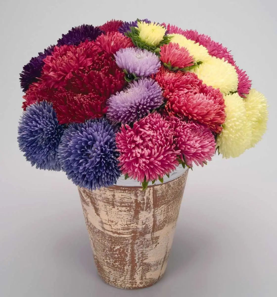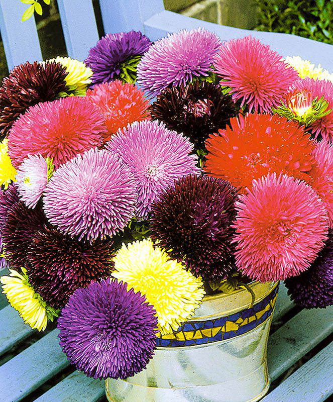 Новий чудовий сорт айстри для зрізання. Кущ пірамідальної форми, висотою 70-80 см, з численними міцними квітконосами.