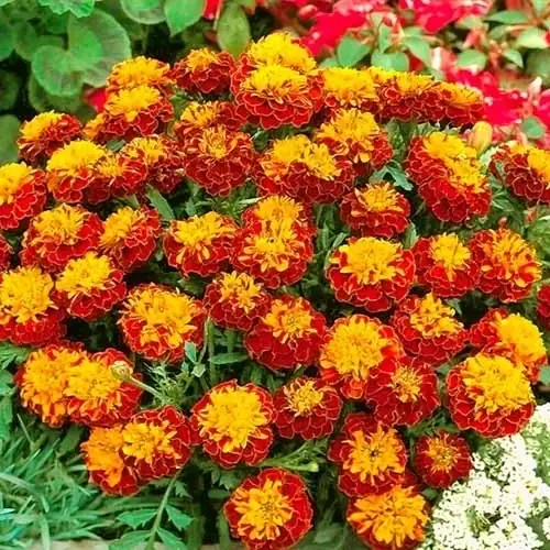 Фаворити серед квітів майже на кожній клумбі. Рослина мініатюрне, висотою всього 20 см, з махровими червоними квітами діаметром до 7 см порадує вас раннім і тривалим цвітінням до морозів.