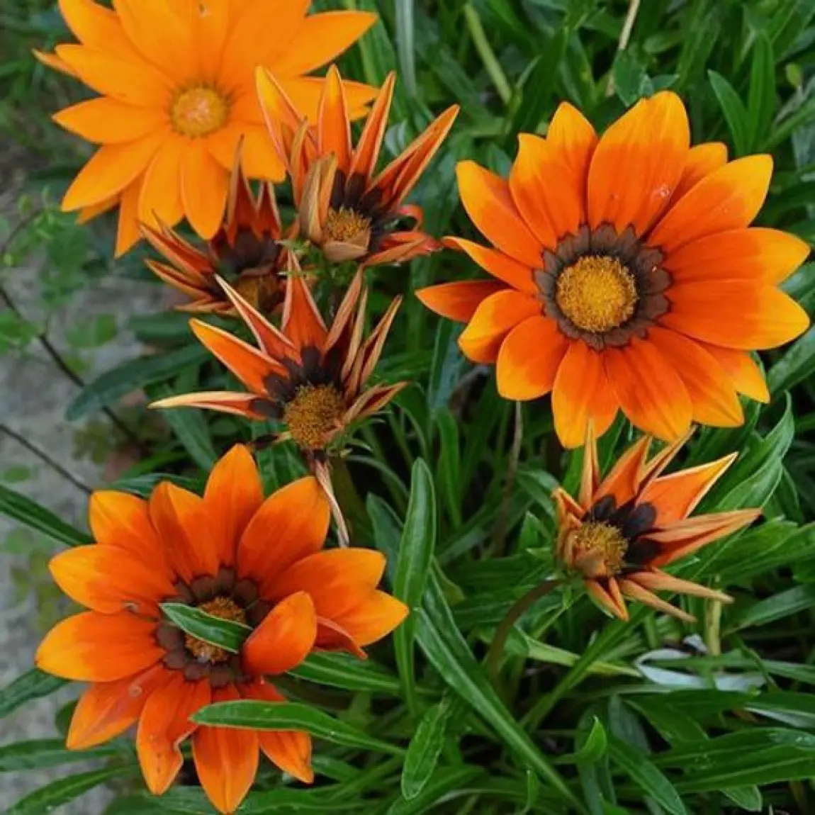 Це однорічна карликова рослина висотою 15 см. Квітки великі і яскраві, насичено-оранжевого кольору з темним обідком в центрі. Квітки в діаметрі 7-10 см, зібрані в суцвіття-кошики. Цвітіння довгі, з липня по жовтень. Ці квіти ідеально підходять для вирощування в різних клумбах, садових вазонах і бордюрах як грунтопокривних рослин.