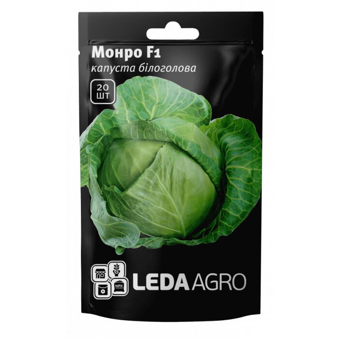 Пізній гібрид капусти Монро відрізняється тривалим терміном зберігання. Качани вагою від 2,2 до 4.5 кг. Вегетаційний період 110-120 днів.