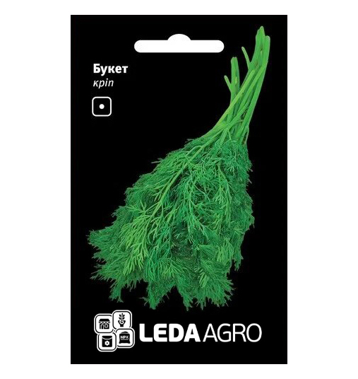 | За допомогою насіння Букет Hem Zaden ви зможете виростити ранній сорт кропу. Він відрізняється високою врожайністю, потужними кущовими рослинами та стійкістю до морозів. Листя кропу має яскравий аромат, насичений солодкуватий смак і гарний товарний вигляд. Вони підходять для будь-якого вживання, переробки, кулінарії та консервування. Насіння кропу можна використовувати як спецію. У нього тонкий аромат та гострий смак. |