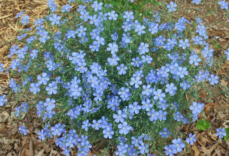Зацвітає після посіву на другий рік, живе квітка один день, на зміну йому розпускається новий і так повторюється все заново. Льон вирощений з насіння цвітуть пишніше і міцніше, ніж при поділі куща. А ділять його у квітні або серпні, між кущами при посадці залишають 20 см.