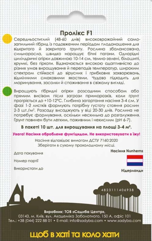 Насіння огірка Пролікс F1, 10шт, Nunhems, Голландія, насіння Садиба Центр