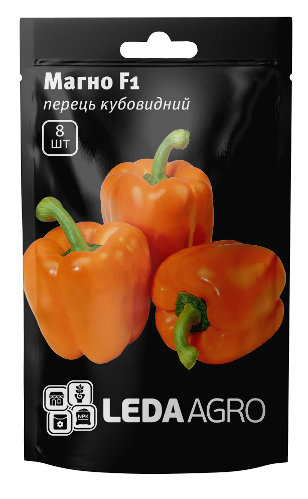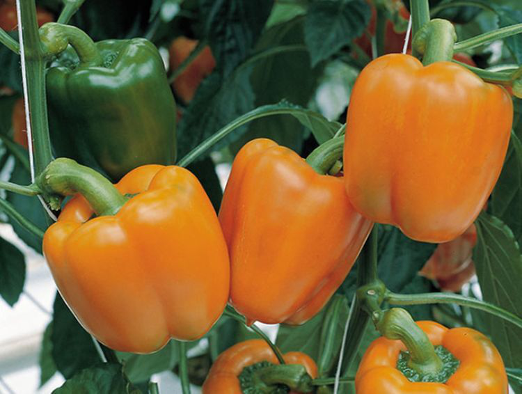 Плоди помаранчевого кольору. Однорідної структури, важкі, в діаметрі 9-10 см, товщина м'якоті 0,5 - 0,6 см. Форма кубовидная. Перці мають відмінний товарний вигляд, смакові якості і аромат.
