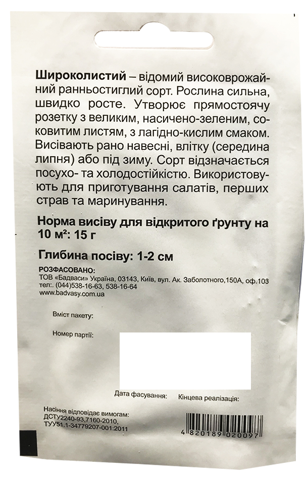 Широколистий - ранньостиглий і один з найпопулярніших сортыв щавлю. Вегетаційний період - 40-55 днів.