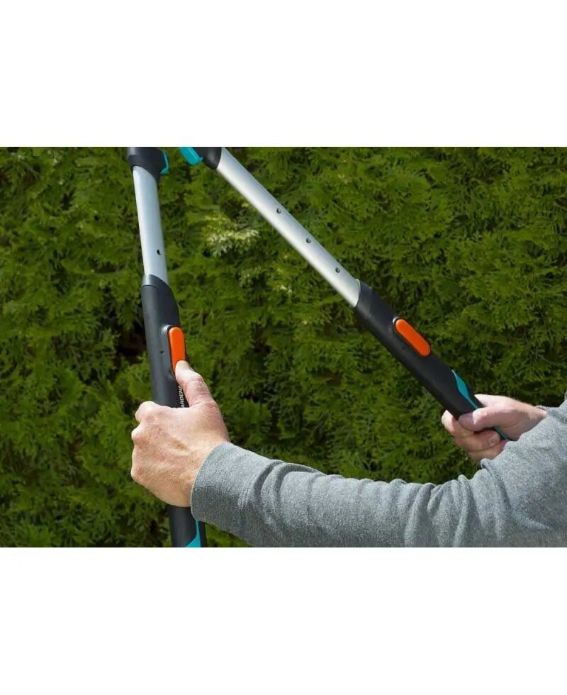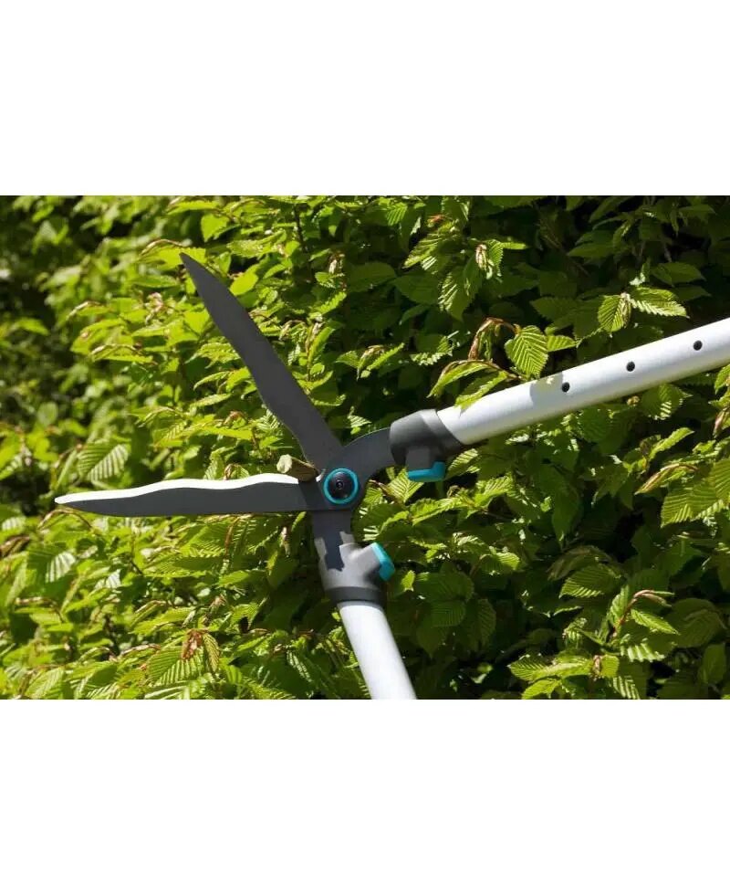 За допомогою садових ножиць Gardena TeleCut ви зможете покращити зовнішній вигляд і стан живоплоту, чагарнику або дерева. Такими ножицями зручно обрізати як верхні, так і нижні гілки, оскільки вони мають телескопічні ручки. У ножиць довгі хвилясті леза, які роблять акуратні зрізи без шкоди для рослин. Інструмент не піддається впливу корозії, стійкий до деформації, пошкоджень та налипання сміття. Він легкий, міцний, практичний та довговічний.