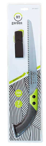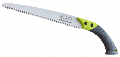 Тригранна заточка зуба зворотної спрямованості полегшує роботу з гілками, до яких потрібно дотягуватися. Загартування зубів збільшує ресурс інструменту. Ручка має отвір для зберігання пили в гаражі або коморі.