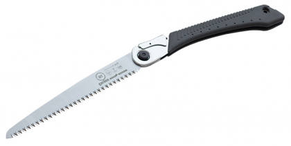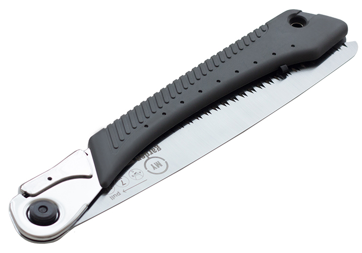 Складне лезо із загартованої сталі чудово пиляє матеріали. Засувка на ручці не дозволить лезу раптово складеться. Тригранна заточка зуба зворотної спрямованості полегшує роботу з гілками.