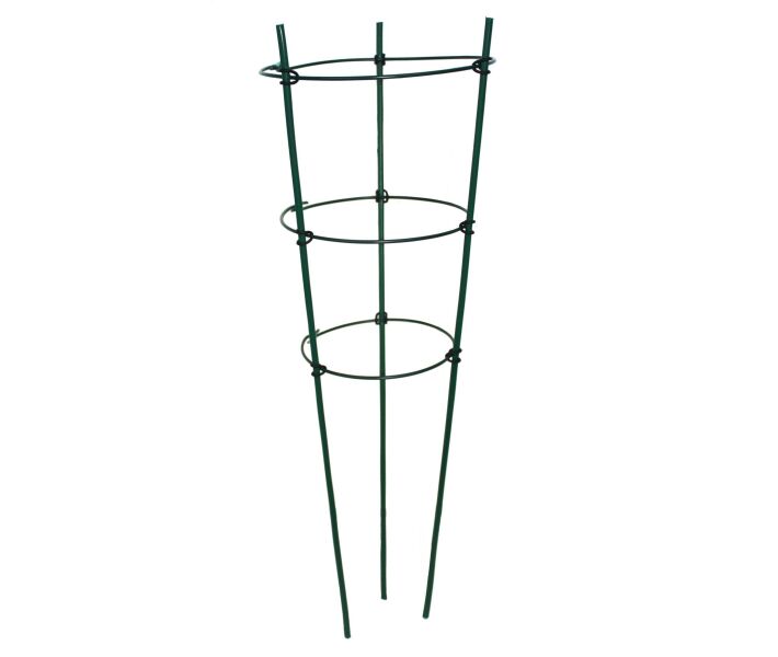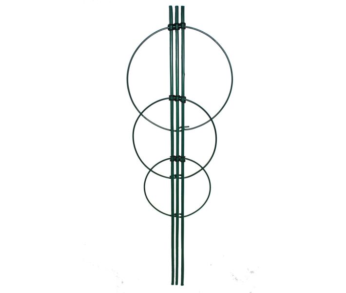 Висока і надійна опора з трьома кільцями для підтримки рослин. Не забруднює ґрунт і не шкодить рослинам. Стійка до вологи й УФ променів.