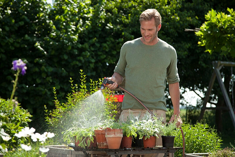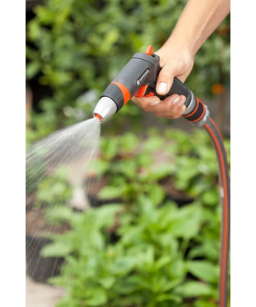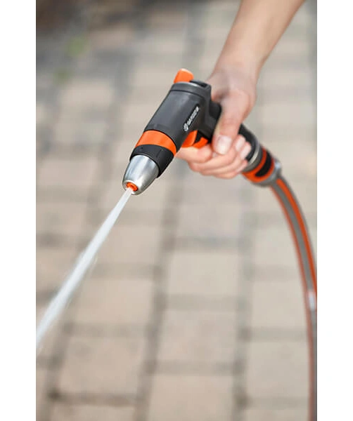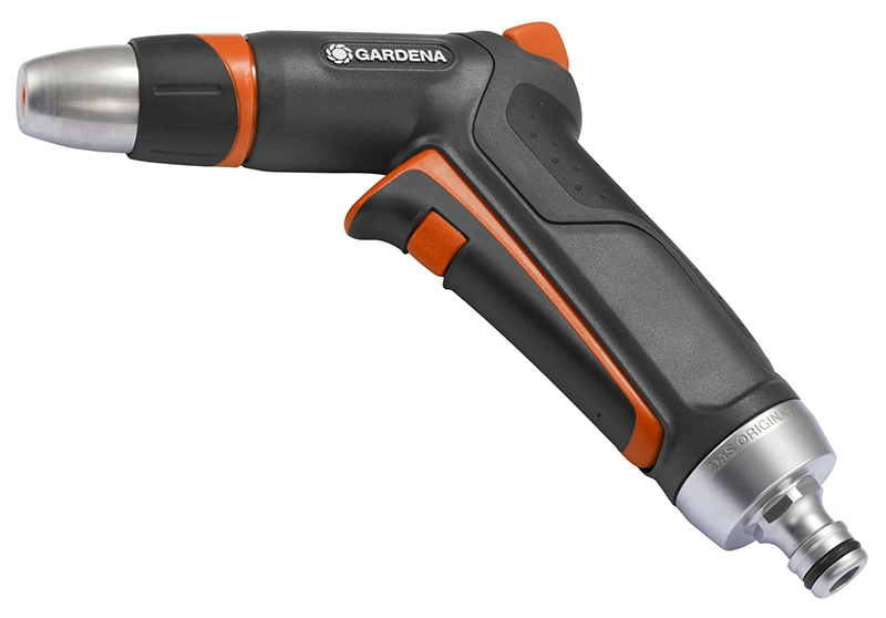 Пістолет з плавним регулюванням Gardena Premium однаково підходить як для очищення так і для поливу. Струмінь води може регулюватися від жорсткої струменя до дрібнодисперсного туману. Елементи з м'якого пластику на розпилювачі забезпечують захист від пошкоджень. Металеві деталі корпусу і штуцер для виняткової надійності.