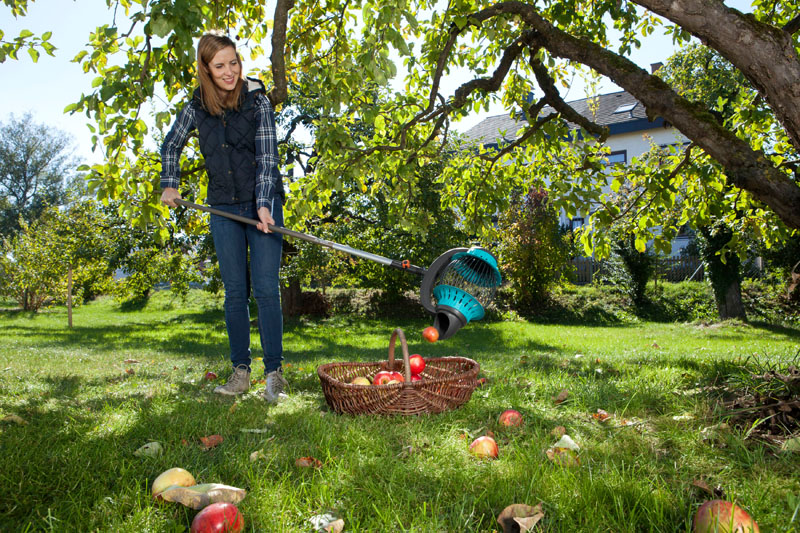Підходить для різних завдань. Не ушкоджує плоди. Особливо зручно збирати фрукти, горіхи, а також м'ячики для тенісу, гольфу і т.д. Легке витягання плодів без додаткового інструменту. Бічний захват дозволяє зібрати плоди, які знаходяться в траві. Для плодів діаметром від 4 см до 9 см. Виготовлено з високоякісного пластику. Використовується з ручками комбісистеми "Gardena", рекомендована довжина 130-150см (не комплектується, замовляється окремо).