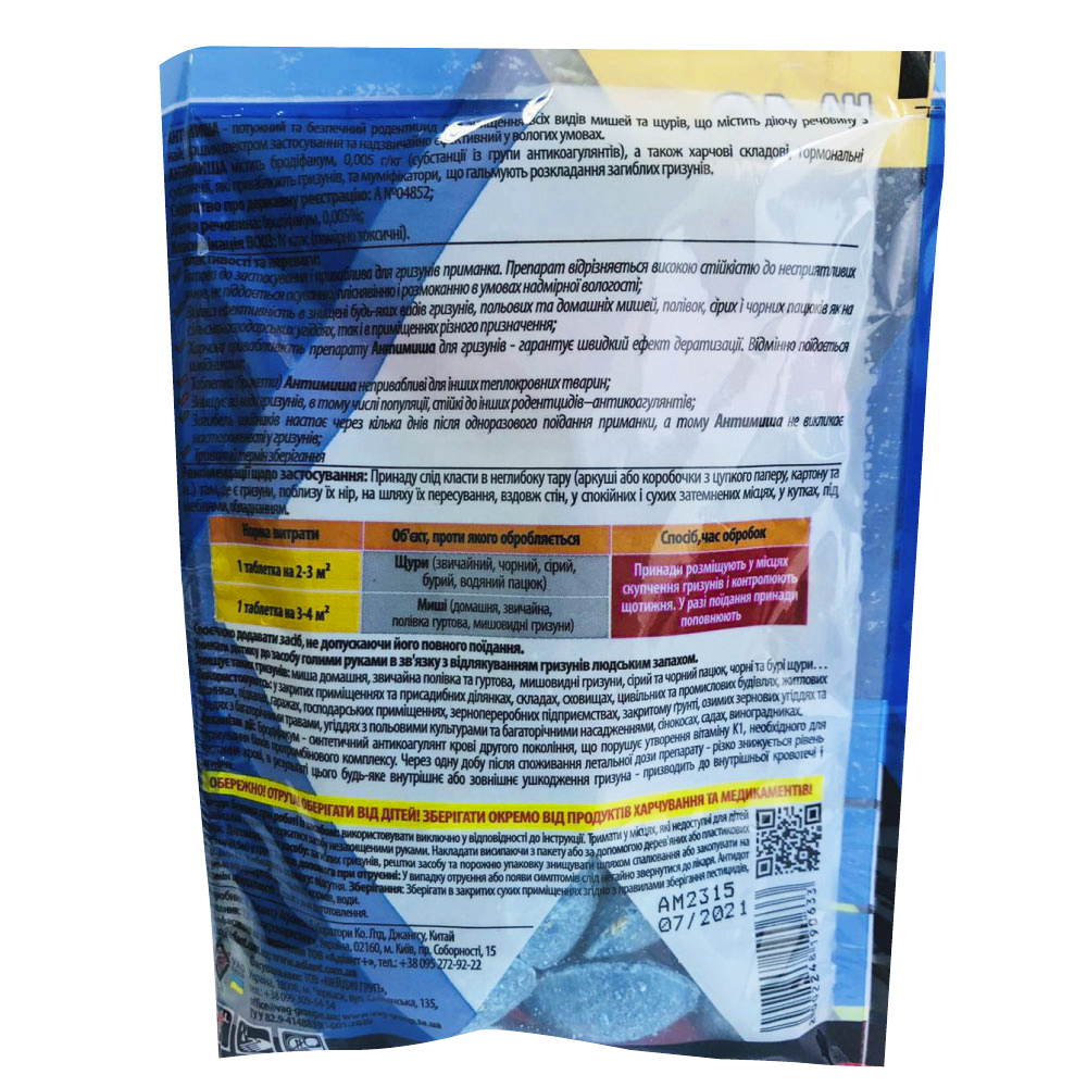 Родентицидні таблетки Антимиша - швидко та ефективно винищують гризунів, муміфікуючи їхні тіла. Приманка максимально приваблива для гризунів, як по запаху і смаку, так і за зовнішнім виглядом.