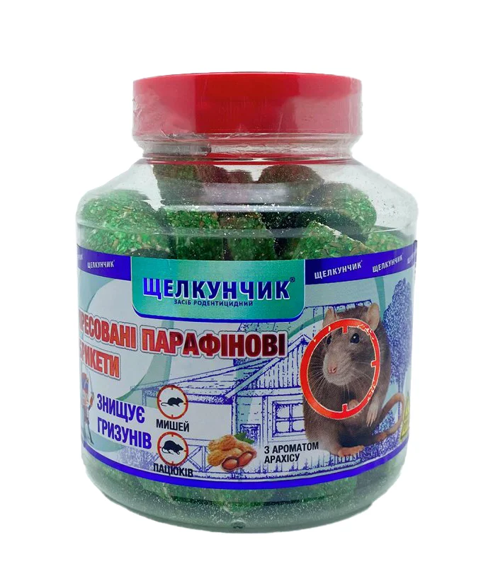 Ефективний засіб для захисту житлових і нежитлових приміщень від усіх видів гризунів. Сильно привертає шкідників, не розмокає на відкритому повітрі, і муміфікує гризунів.