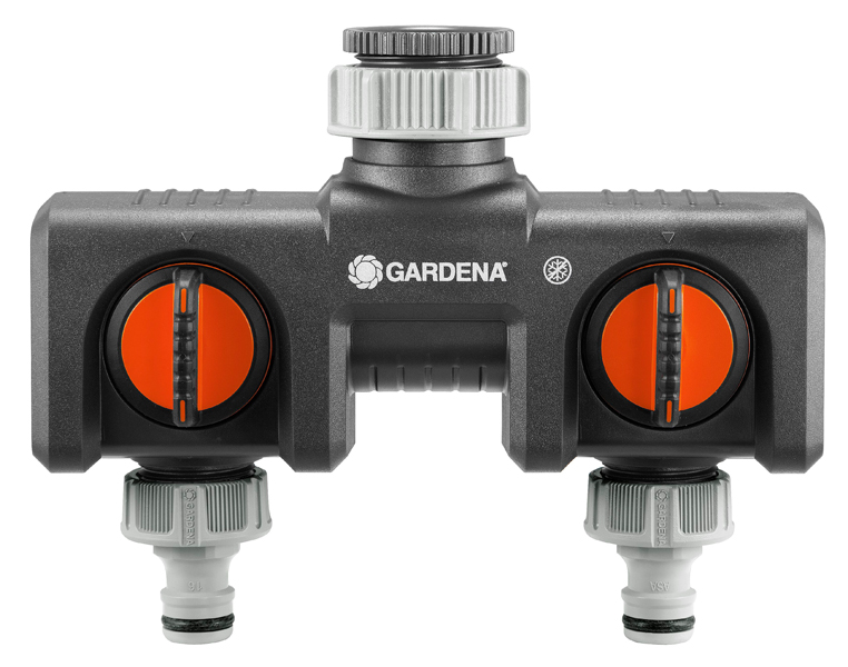 Потік води на виходах плавно регулюється. До розподільника можна під'єднати два клапана системи поливу GARDENA. За допомогою штуцера "Профі" Maxi-Flow (арт. 2801-20) розподільник можна перетворити в систему "Профі" Maxi-Flow GARDENA. Розподільник підходить для кранів з різьбленням 33,3 мм (G 1 дюйм).
