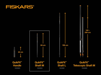 Держак Fiskars QuikFit (M) середній 136022 (1000664) - це універсальна ручка, яка дозволяє використовувати безліч насадок. Спеціальний механізм легко замикається на робочому елементі й блокує зісковзування.