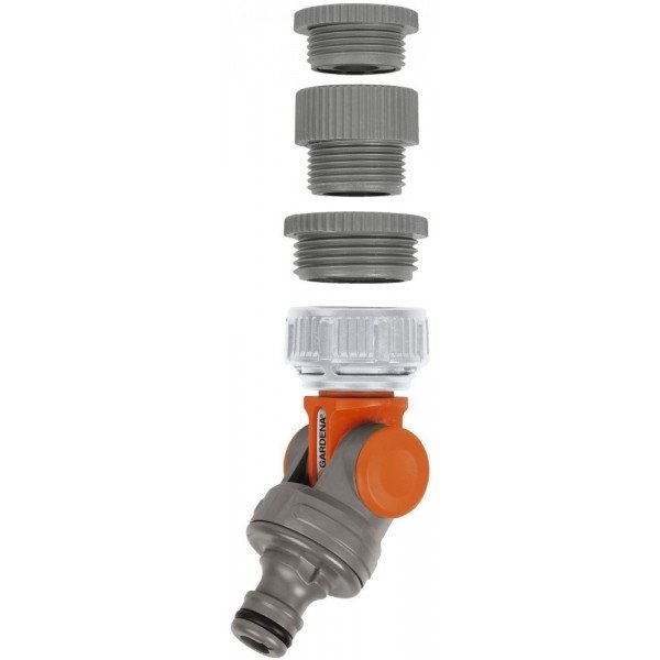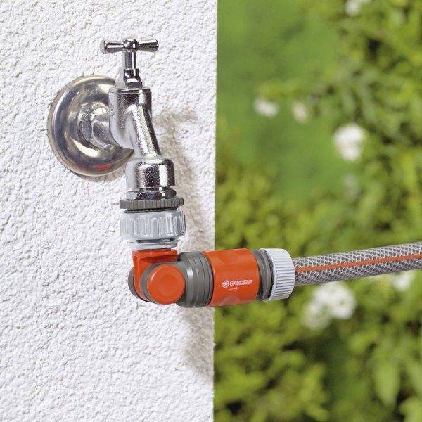 Якщо під'єднати шланг до крана звичайним перехідником, то при натягу шланга в місцях підключення можуть утворюватися заломи. Це значно знизить час експлуатації шланга, а також самого штуцера. Для розв'язання проблеми ми рекомендуємо використовувати спеціальний адаптер, у якого повертається нижня частина. Прикладом такого корисного пристрою є штуцер Gardena 02999.