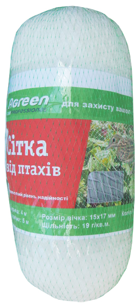 Призначена для захисту саду, виноградників і овочевих плантацій від шкоди, яку завдають птахи. Сітка ромбовидна, легко встановлюється в будь-яких комбінаціях.
