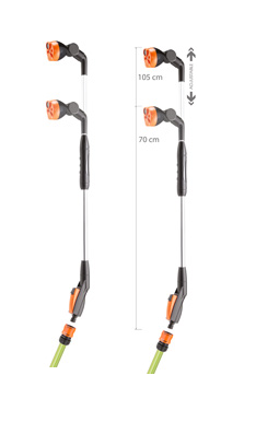 Багатофункціональна насадка-розпилювач Elagant 9086 від італійського виробника Claber, з телескопічним подовжувачем, довжина якого варіюється 70-105 см, для поливу рослин ростуть на висоті.