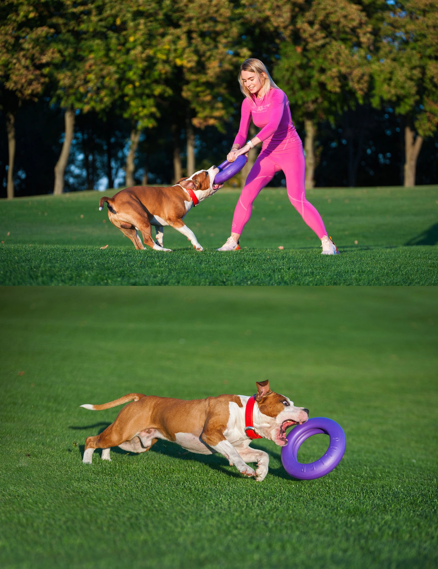 Інноваційна тренувальна іграшка, для підвищення фізичної активності та залучення собак дрібних порід (від 45 кг). Матеріал - нетоксичний, міцний і легкий. Використовується для підготовки собак до змагань з Dog Puller. 20 хв тренувань = 5 км бігу в інтенсивному режимі.