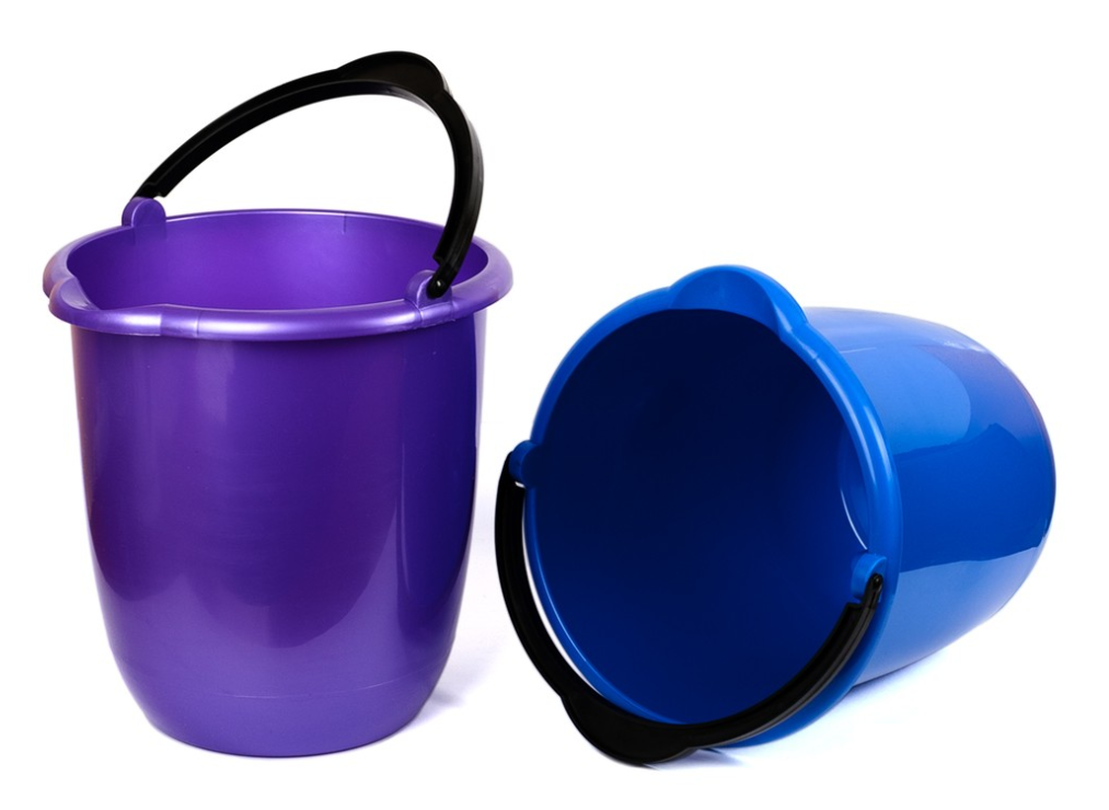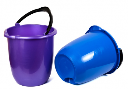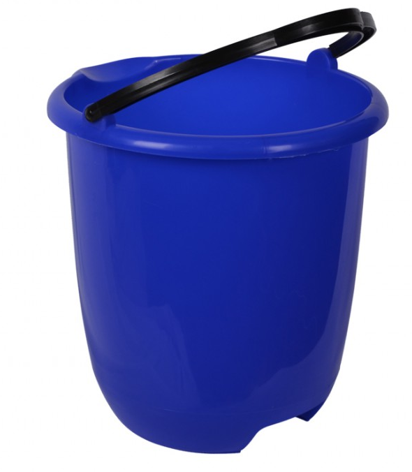 Відро пластмасове без кришки, для загального призначення. Глибока ємність, об'ємом 12 л, має конусоподібну форму з розподілами, високі бортики і неширокі обідки, передбачений носик для зручності. Ручка, вільно рухається.
