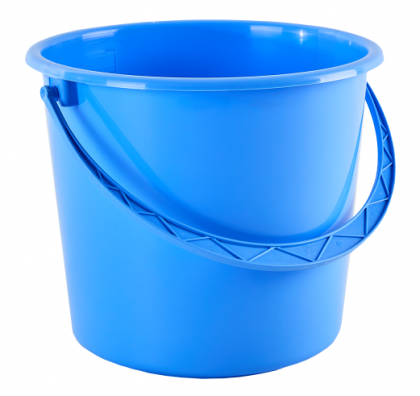 Відро пластмасове без кришки, для загального призначення. Глибока ємність, об'ємом 14 л, має високі бортики і неширокі обідки. Міцна ручка, вільно рухається. На внутрішній стінці є мірна шкала.