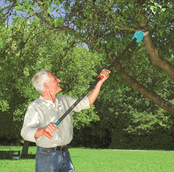 Дуже легка і вузька ріжуча головка дає можливість з комфортом проводити обрізання конкретних гілок. Кут обрізки регулюється прямо з землі (до 200 °), що дозволяє точно зрізати гілки, що ростуть в будь-якому напрямку. Леза спеціальної форми утримують зрізувану гілку в оптимальному положенні, забезпечуючи особливу легкість роботи і чистоту зрізу. Внутрішня зубчаста передача збільшує потужність зрізання - це гарантує неймовірну простоту обрізки і економію сил. Леза прецизійного заточування з покриттям від налипання полегшують зрізання і при цьому без зусиль очищаються. У той же час покриття захищає леза від іржі.