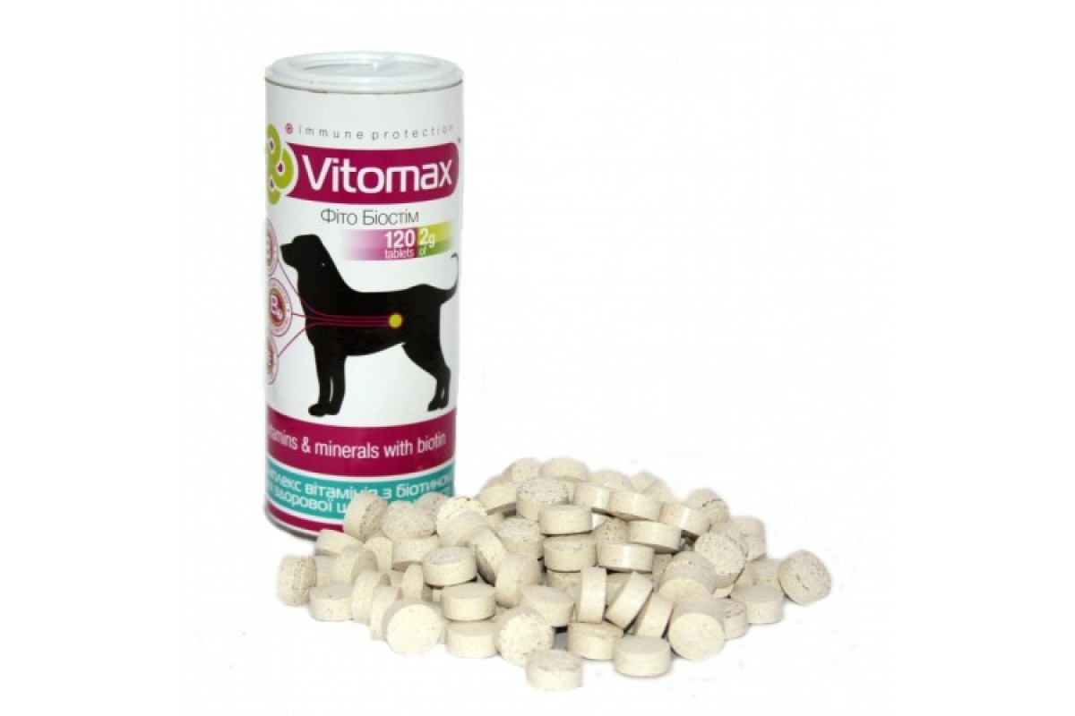 Деякі собаки не отримують разом з основним кормом достатньо вітамінів і мінералів. Це призводить до погіршення самопочуття, а також може стати причиною виникнення різних захворювань. Задовольнити мінеральні потреби вихованця можна за допомогою спеціальних добавок. Якщо вам потрібно комплексне рішення з упором на поліпшення зовнішнього вигляду шерсті й шкіри, тоді рекомендуємо вибрати вітамінно-мінеральний комплекс Vitomax Фіто Біостим.