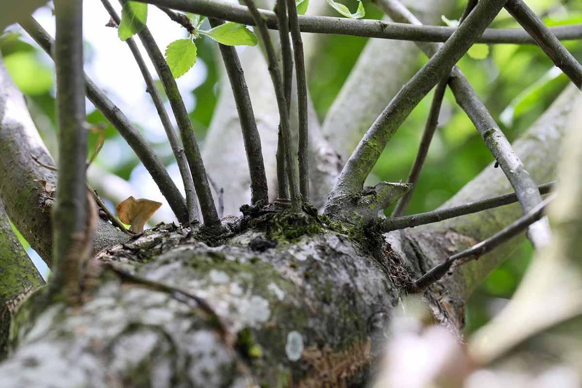 Неправильное формирование кроны. Ветви должны быть равномерно расположены, а дерево - хорошо освещено со всех сторон. Если обрезка проводится хаотично, это может привести к загущению кроны, что уменьшит доступ света и воздуха, вызывая развитие болезней.